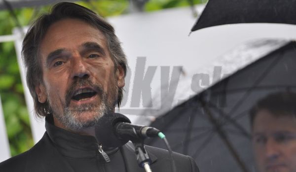 Britský herec Jeremy Irons si prevzal na 17.roèníku medzinárodného filmového festivalu Art Film Fest 2009 cenu Hercova Misia, ktorú pripevnil na nový Most Slávy v kúpe¾nom parku v Trenèianských Tepliciach. Trenèianske Teplice, 20. júna 2009. Foto: SITA/TomᚠSomr