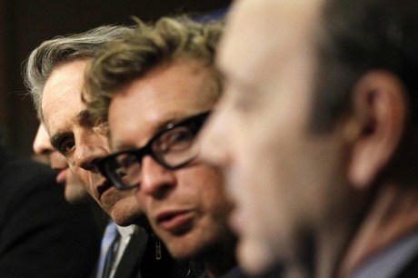 Cast members Jeremy Irons (L), Simon Baker (C) and Kevin Spacey are interviewed at the premiere of “Margin Call” during the Sundance Film Festival in Park City, Utah January 25, 2011. REUTERS/Mario Anzuoni (UNITED STATES – Tags: ENTERTAINMENT IMAGES OF THE DAY)