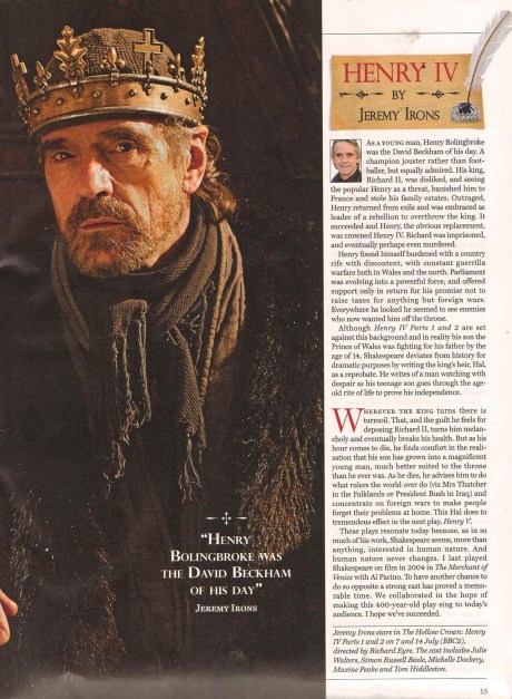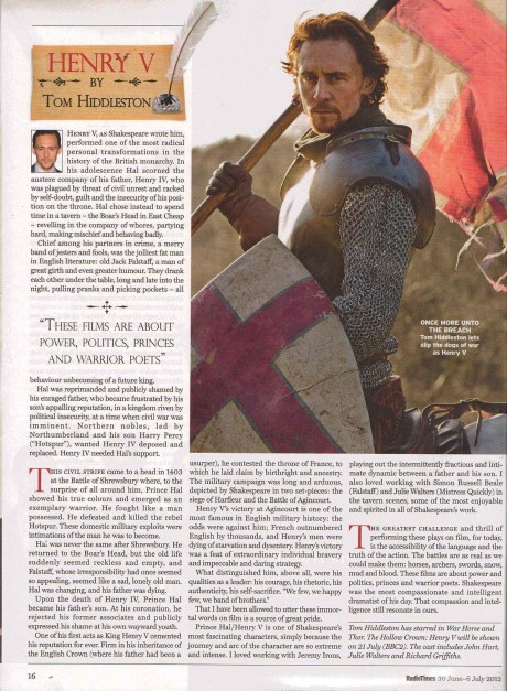 Categories: Film, Latest News and Posts . Tags:BBC, Ben Whishaw, England, Gloucester Cathedral, Henry IV, Henry V, Jeremy Irons, Olympics, Radio Times, Richard Eyre, Richard II, Shakespeare, The Hollow Crown, Tom Hiddleston, UK . Author: jeremyironsno1fan