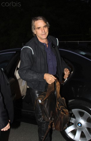 15 Sep 2012, Dublin, Ireland — Actor Jeremy Irons arriving at a black tie even at the City West Hotel in Dublin, Ireland. Jeremy arrived in a Mercedes and was wearing his usual leather outfit, but this time he had saddle bags with him which are normally used when travelling on a horse. He went straight into the hotel to change to present an award for The Annual Rehab Awards. Pictured: Jeremy Irons — Image by © Splash News/Corbis