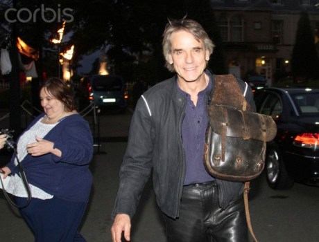 15 Sep 2012, Dublin, Ireland — Actor Jeremy Irons arriving at a black tie even at the City West Hotel in Dublin, Ireland. Jeremy arrived in a Mercedes and was wearing his usual leather outfit, but this time he had saddle bags with him which are normally used when travelling on a horse. He went straight into the hotel to change to present an award for The Annual Rehab Awards. Pictured: Jeremy Irons — Image by © Splash News/Corbis