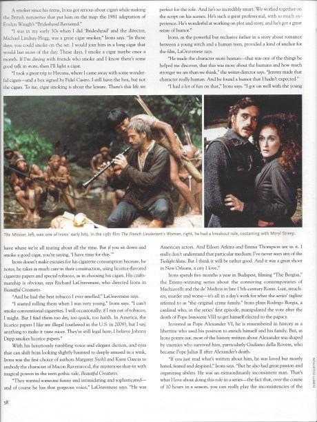 Jeremy Irons in ‘Cigar Aficionado’ Magazine » CAPage58