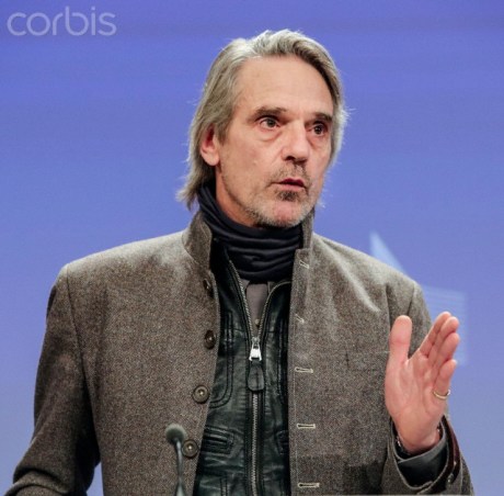07 Mar 2013, Brussels, Belgium — Brussels, Belgium. 7th March 2013 — British actor Jeremy Irons during a talk about the plastic wastes at the EU Commission. — British actor Jeremy Irons was invited by EU Commissioner Potonik to talk about plastic wastes in the world. He added his voice to an EU campaign to ban non-recylable plastics, including plastic bags. — Image by © Olivier Vin/Demotix/Corbis