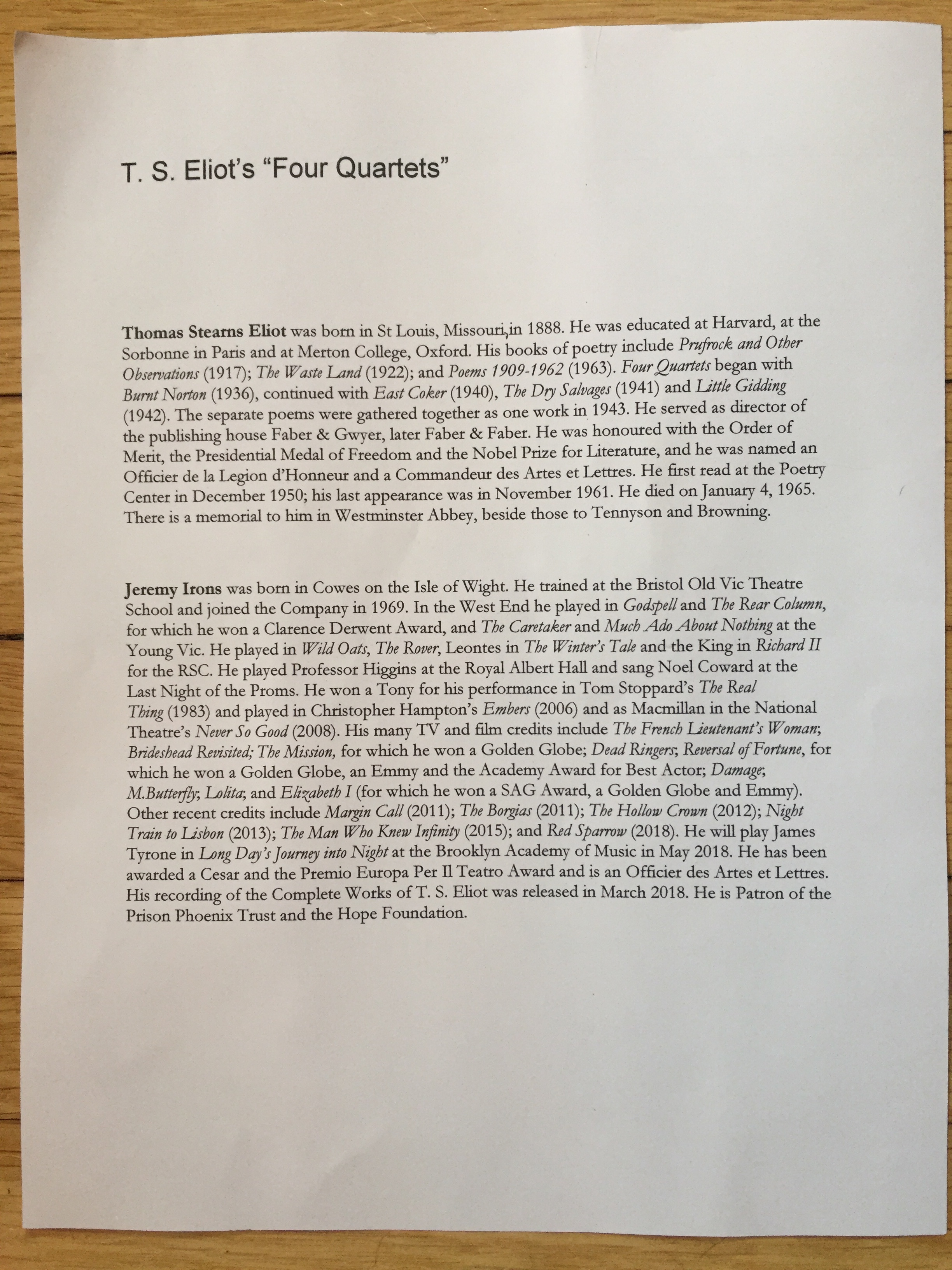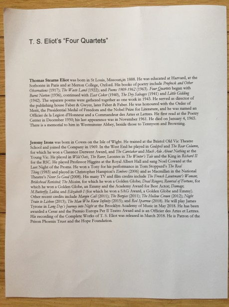 Jeremy Irons Reads ‘Four Quartets’ at 92Y » IMG_9104