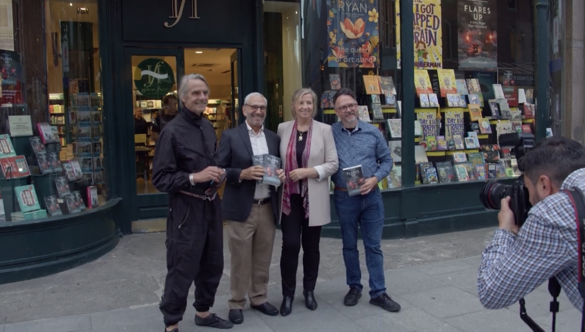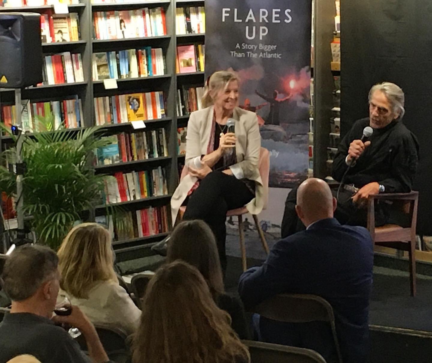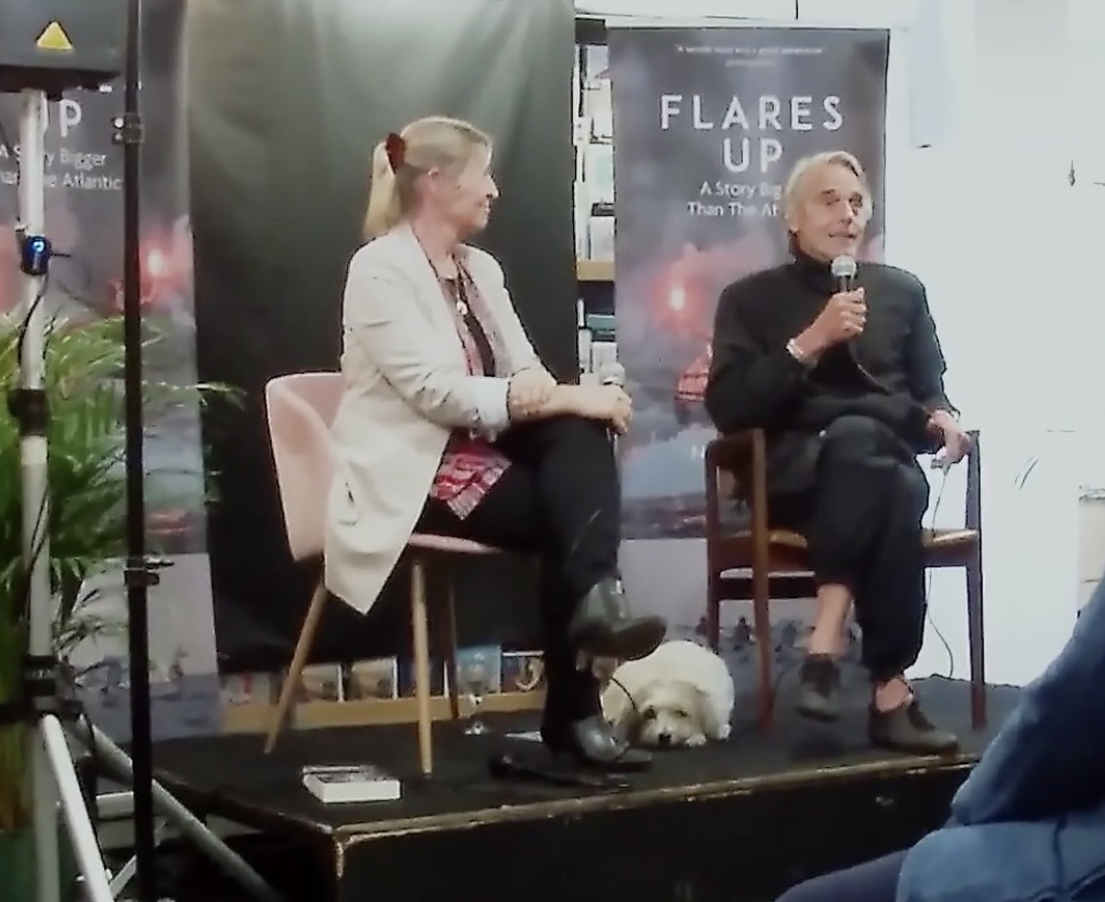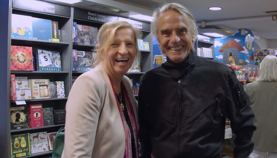 Jeremy Irons was at Hodges Figgis bookstore in Dublin, Ireland, on 8 September 2022, for the launch of Niamh McAnally’s new book Flares Up; A Story Bigger Than the Atlantic.