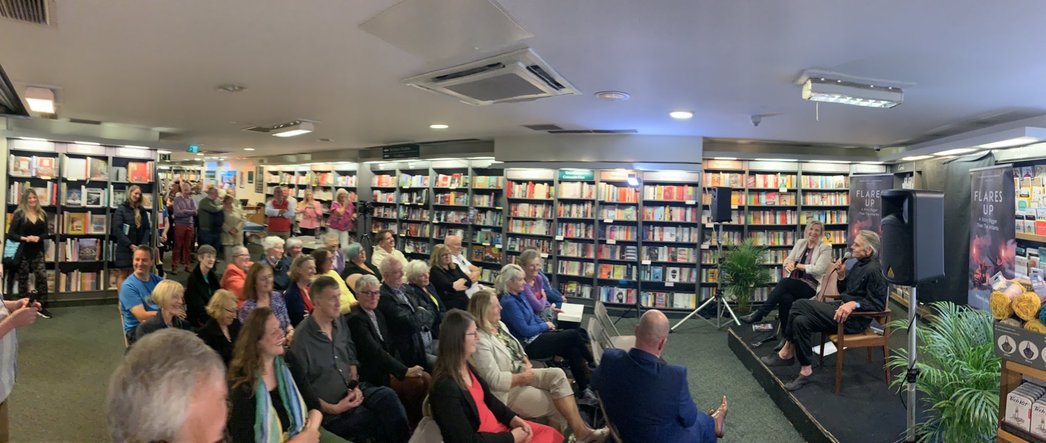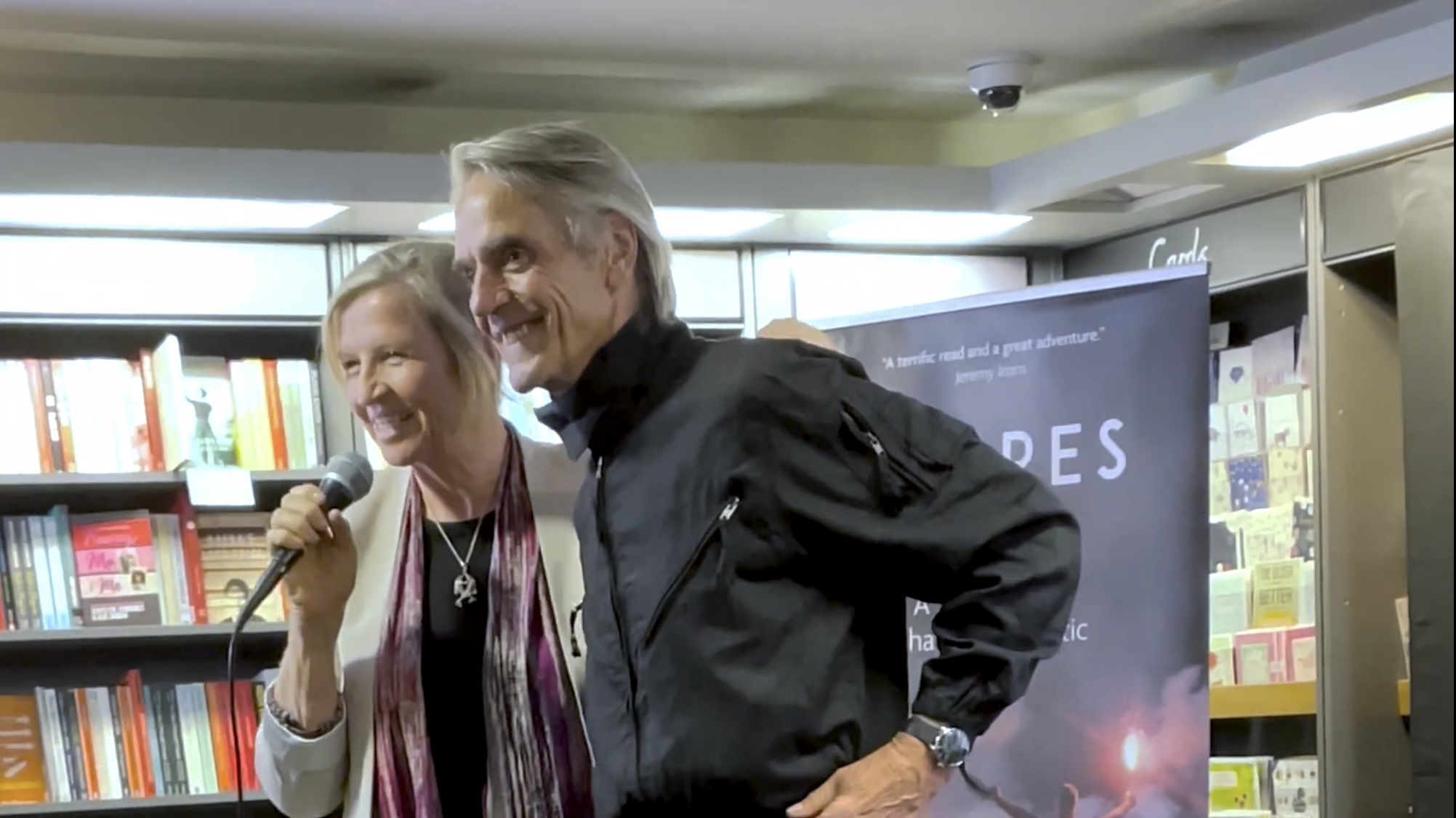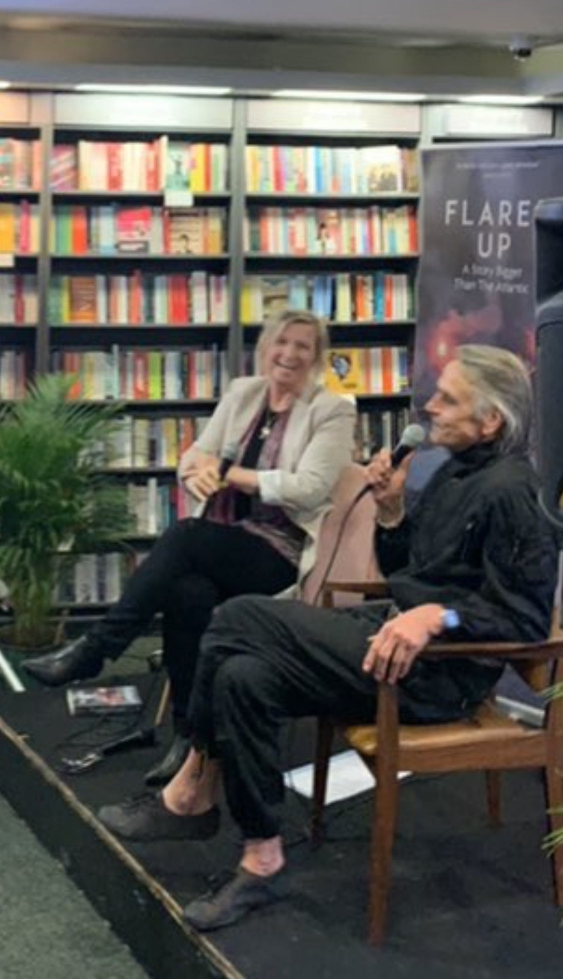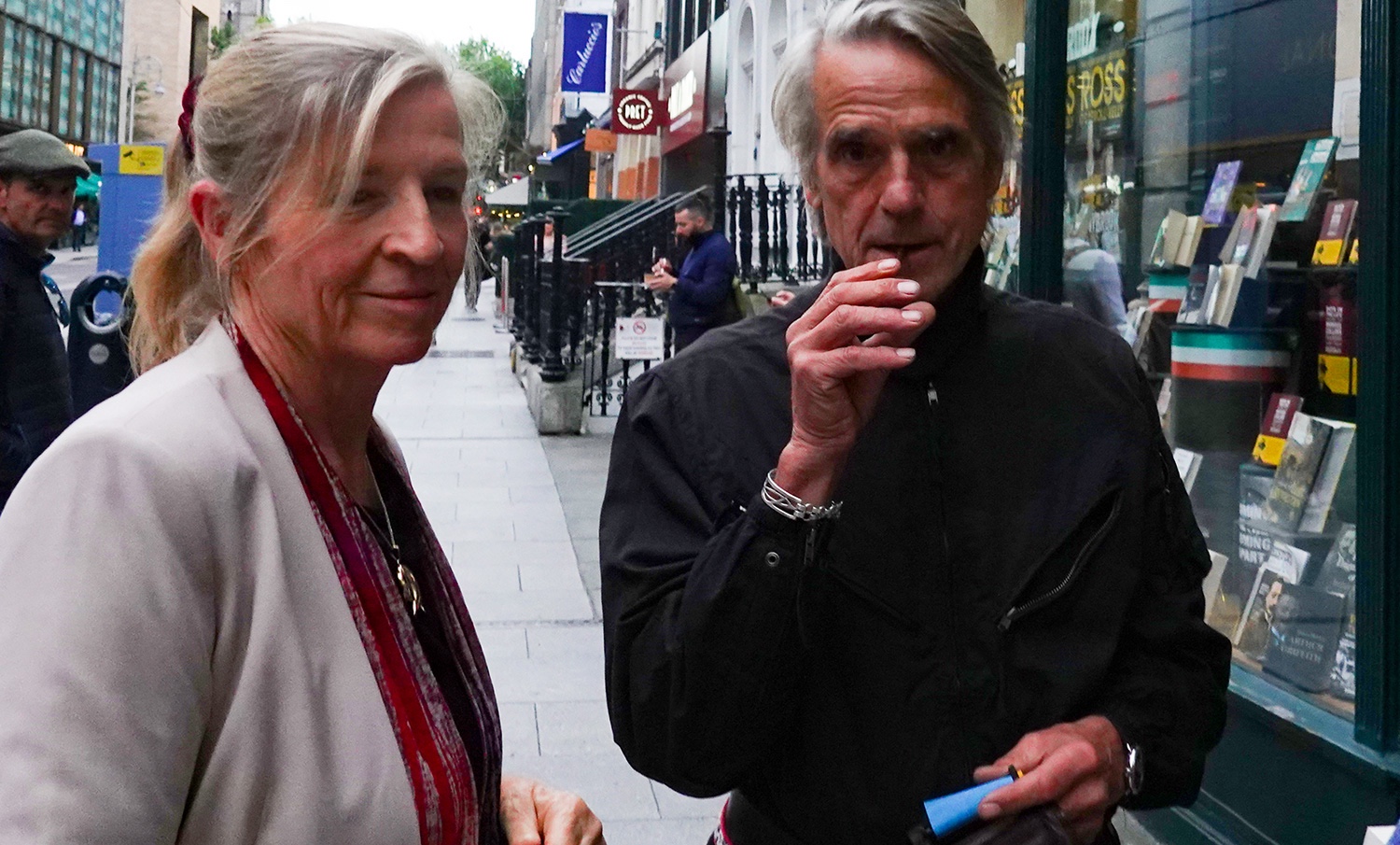Jeremy Irons was at Hodges Figgis bookstore in Dublin, Ireland, on 8 September 2022, for the launch of Niamh McAnally’s new book Flares Up; A Story Bigger Than the Atlantic.