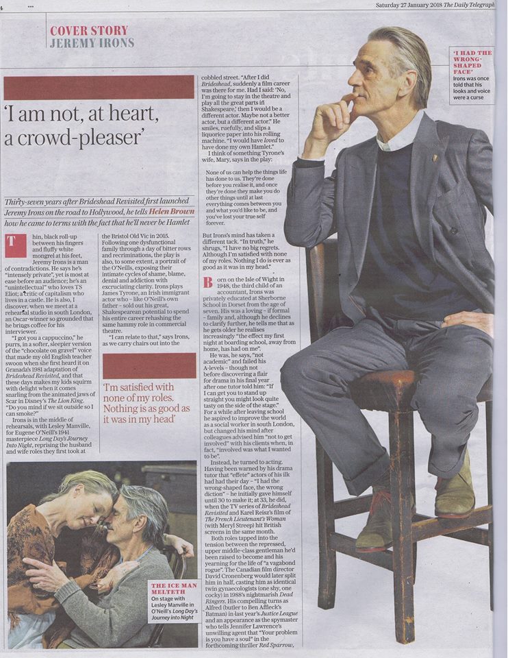 Tuesday 6 February 2018 was the Opening Night and Press Night for the London run of Long Day’s Journey Into Night, starring Jeremy Irons, Lesley Manville, Matthew Beard, Rory Keenan and Jessica Regan, directed by Richard Eyre.