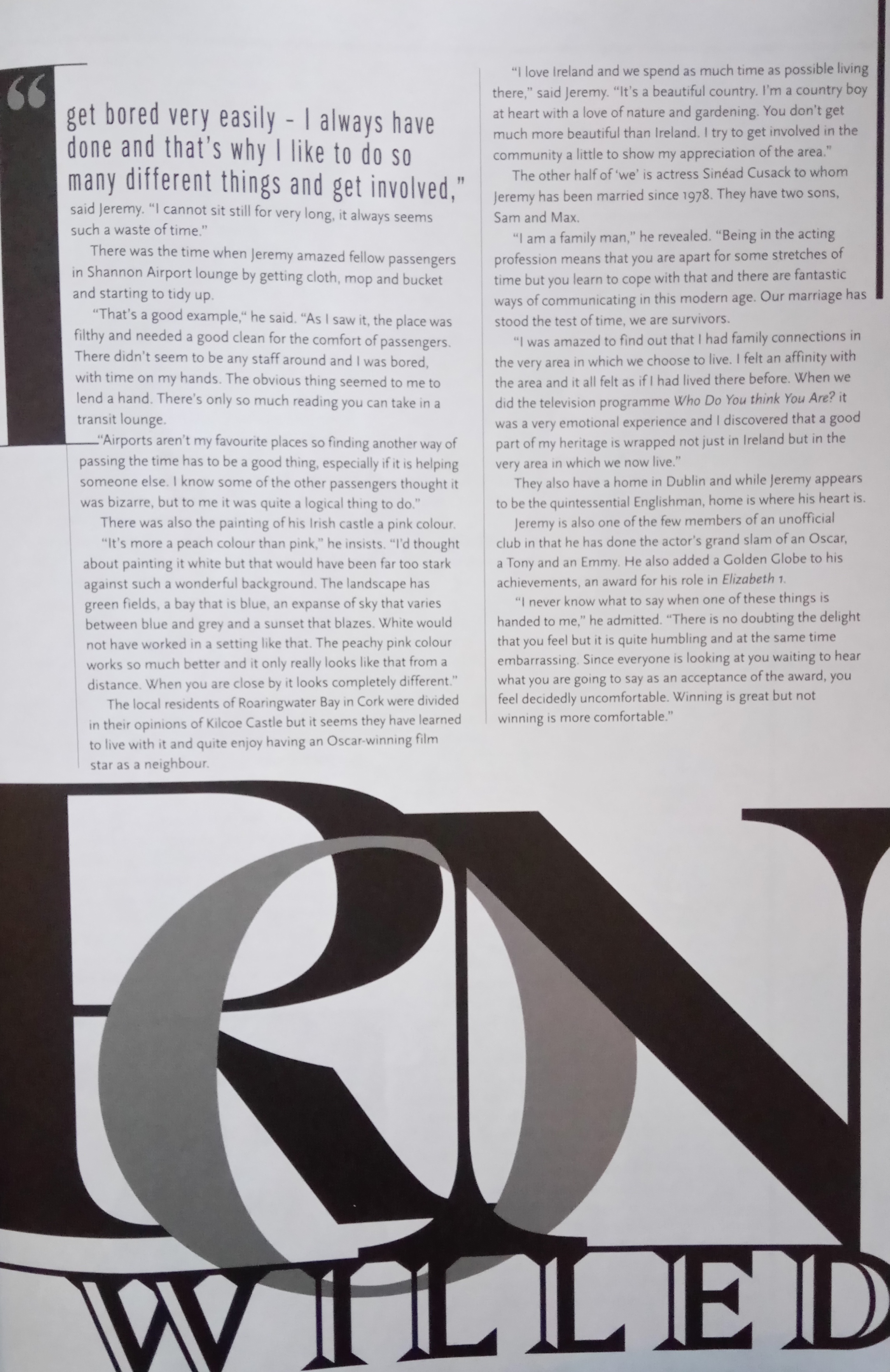 Jeremy Irons was interviewed by Bernard Bale for the June 2017 issue of Somerset Life Magazine.