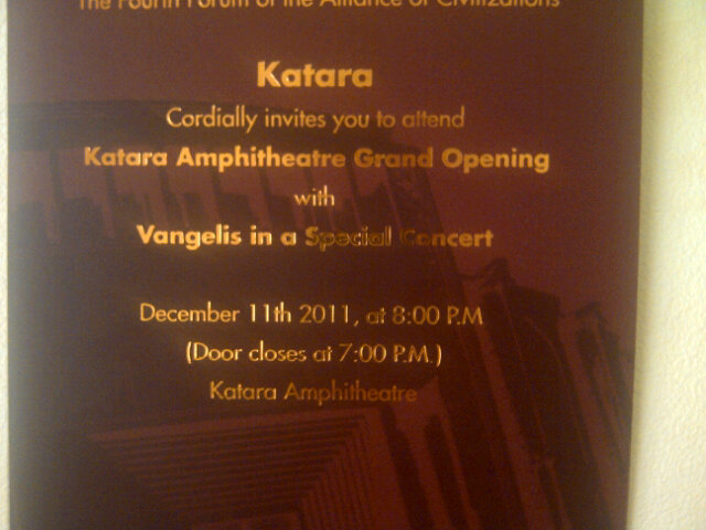 Vangelis, who has remained seated throughout the concert in the top tapping their keyboards, accepted the invitation of the state to prospect and Katara Foundation of conceiving, designing, conducting and composing music for the event, which also opened the amphitheater.
